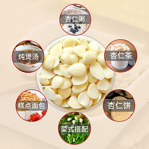 一整块的杏仁片,形态饱满且完整,而且自然晾晒的方式更是保留了原有香味。吃法多样,制成薄脆饼干和炖煮汤品都适宜。