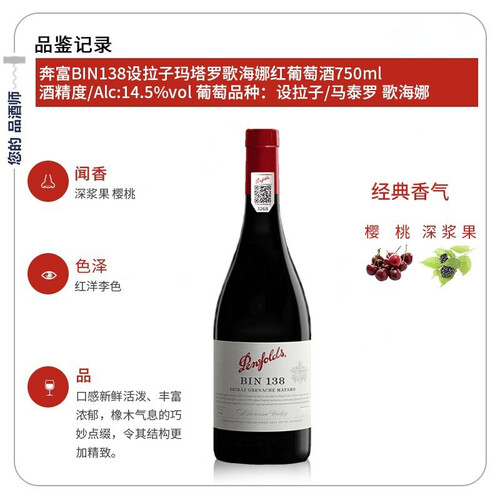精心挑选新鲜饱满的西拉、马塔罗等葡萄品种,果香味十足,色泽剔透;口感醇厚饱满,单宁平衡,不会感到酸涩。