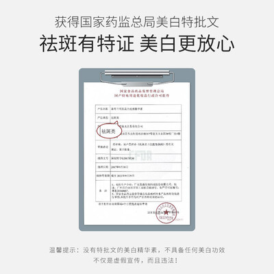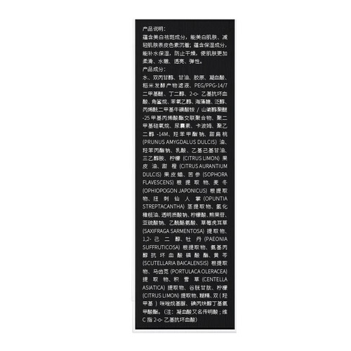 含有传明酸成分,淡化斑点的同时提亮肌肤,改善肤色暗沉,使肌肤紧致弹嫩,玻尿酸成分有助于肌肤呈现水润状态。