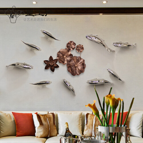 壁饰精选经典的鲤鱼造型,寓意吉祥如意,整体采用不锈钢材质手工锻造,长时间使用也不易生锈,具有极强的艺术性与装饰性。