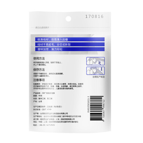 采用较细的线材,方便深入口腔清洁,将残留物质去除。而且它不易卡牙、起毛,1支就可以清洁整个口腔。