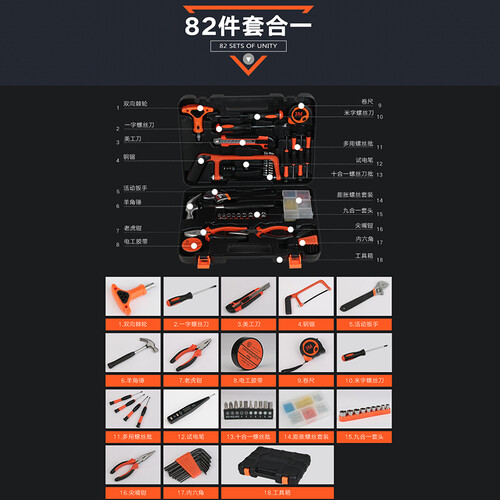 一箱中融入花样修理配件,满足日常使用的需求,突遇意外有准备。配件的曲线符合人体工程学,方便单手持握,作业无烦恼。
