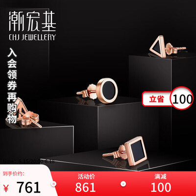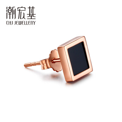 潮宏基 玫瑰金色玛瑙K金耳饰