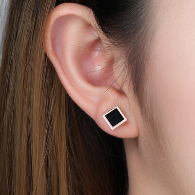 将K金河暗黑系玛瑙显结合,配色大胆,视觉冲击力强。采用几何形设计,线条简单,时尚大气,佩戴更显干练气质。