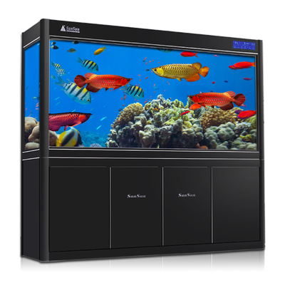 智能显示屏,科技感十足,支持远程监控,方便实时掌控温度状态。搭配超白玻璃,视觉清晰。采用双层雨淋槽,循环过滤,水质更清澈。