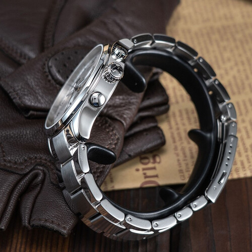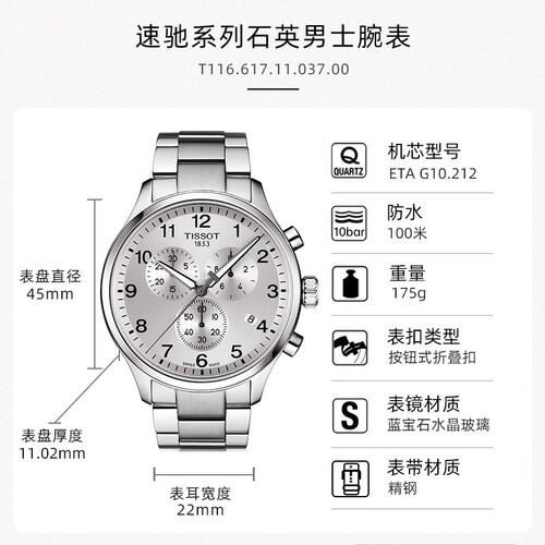 瑞士原装机芯,性能稳定耐用持久。涂层夜光指针,夜晚也能观察时间。百米生活防水,日常梳洗轻度淋洗也可用。