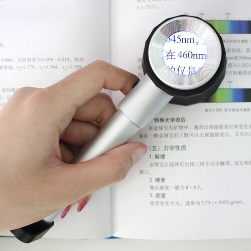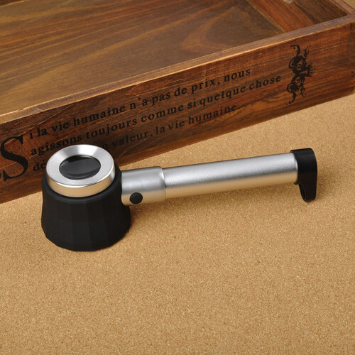 内置刻度板和LED灯珠,适合做精细的观察鉴定。表面橡胶涂层,手感更舒适。