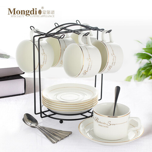 陶瓷触感光滑细腻,搭配外扩杯口,人性化设计使用舒适。淡雅米白色,搭配金色描边装饰,大方得体,格调清新高雅。