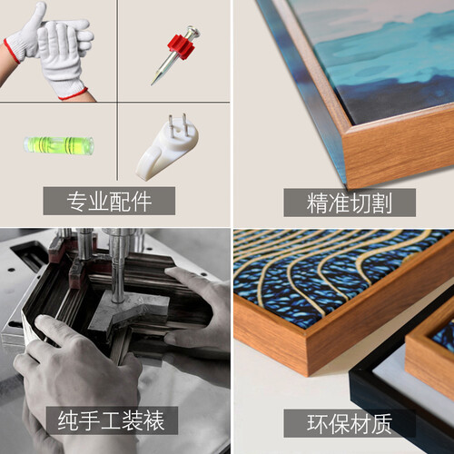 使用PVC材质,摸起来会有凹凸的感觉,让整幅画更有质感。采用PS材质框条,在潮湿的环境中,不变形不开裂。