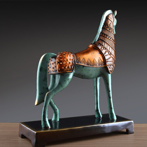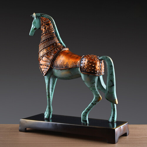 仿古绿战马 | 战马的造型,有着威武的气质。古铜色色马鞍配上仿古绿色的战马,使得摆件凸显出复古的气息。摆件是优质的树脂材质制作,健康环保。