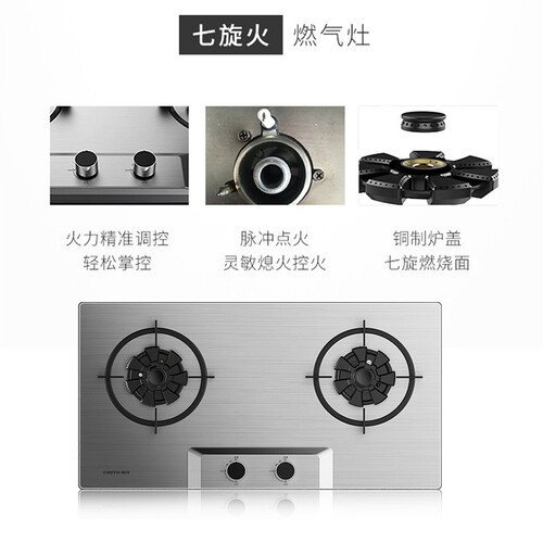 油烟机采用大力环吸板,向下拉伸即可打开,更加易于清洁。燃气灶扇形燃烧面。可拉长火焰周长加大燃烧面积。