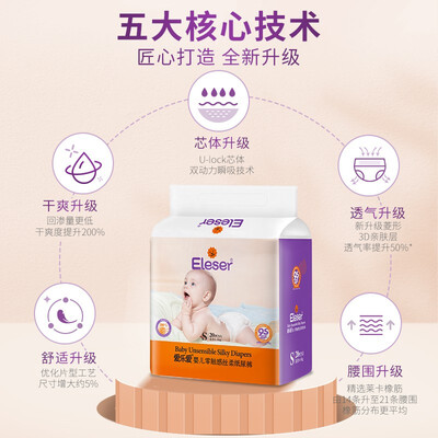 特别采用双动力瞬吸技术,可以快速把尿液吸收,不会出现返渗烦恼,让宝宝远离红屁屁;采用升级版菱形亲肤面层,透气性更好。