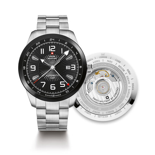 瑞士军表 自动机械双时区手表