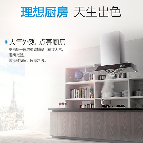 利用蜗壳螺旋仿生学原理,迅速甩出油烟,提升排烟效果。不锈钢一体成型装饰罩,美观时尚,融入厨房风格。