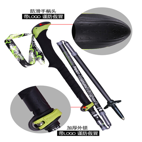 手柄头带有可拆卸腕带,能根据需求以及习惯拆卸和使用,提升登山的便利性,镂空的杖头,质量轻盈无负担。