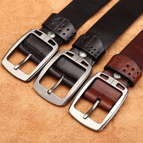 头层派 针扣纯牛皮休闲腰带