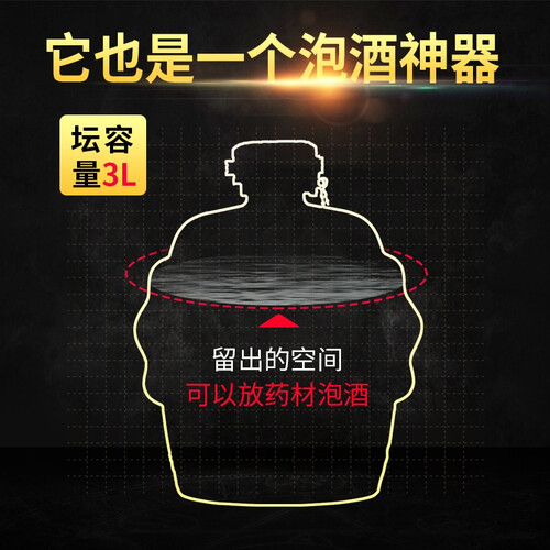1.88L的复古陶坛承装,瓶身酒耳造型寓意多福多禄,瓶身的浮雕纹路细腻凹凸有序,古铜色瓶盖结实不渗漏,更添古朴大方。