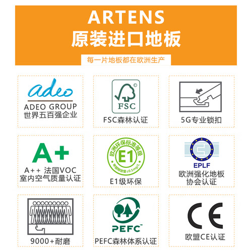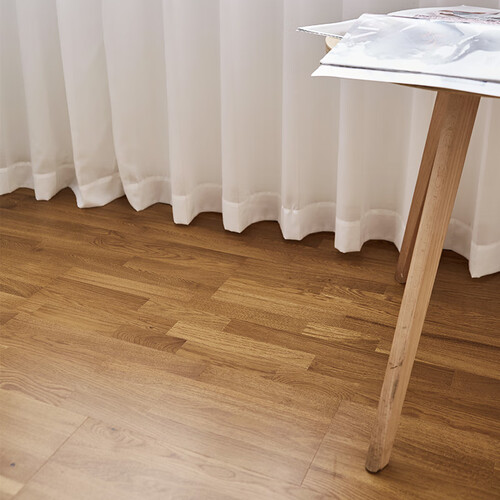 北欧老生橡木,硬度高,稳定性好,做工细致,健康耐用 整体厚度达到14mm,媲美实木 脚感舒适 适用地暖。铺贴效果出众,视觉柔和