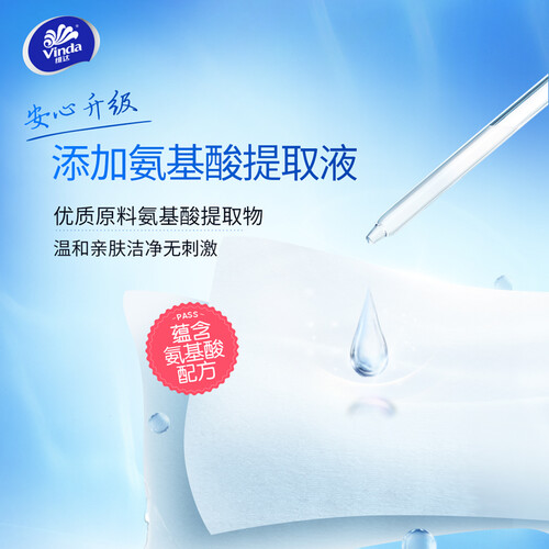 此款添加氨基酸提取液,擦拭皮肤更加温和,不会产生刺痛感;选用优质绵柔无纺布,触感舒适细腻,带来使用新体验。