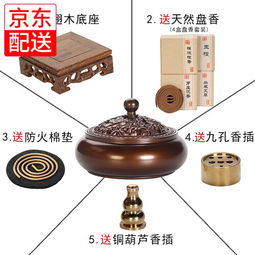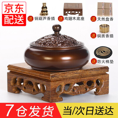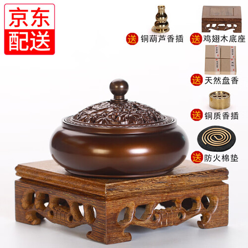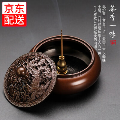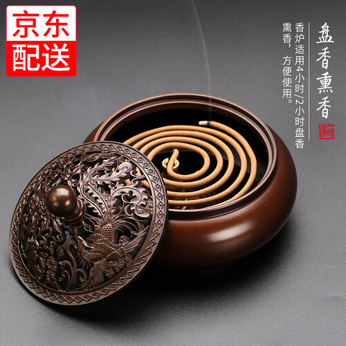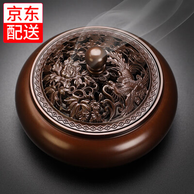 炉身是采用整块黄铜打磨制成,炉壁厚实,质感升级。炉盖上的丹凤朝阳镂空雕刻,让整个香炉的档次得到了升华。
