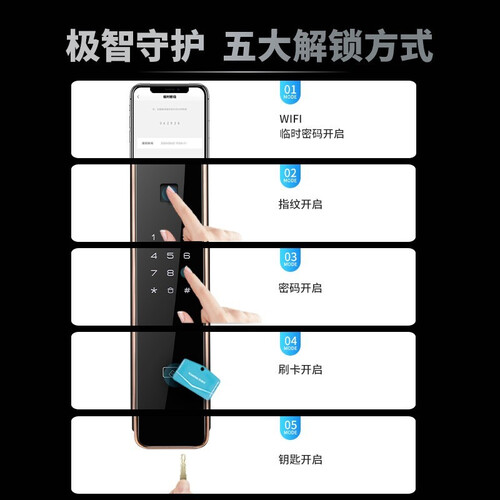 出门忘记携带钥匙,指纹触摸轻松开锁,无法复制的指纹,大大提高门锁安全性,生活更便利
