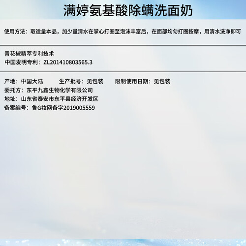 添加氨基酸成分,能够有效锁住面部的水分,滋润肌肤,调节水油平衡。黄金配比的成分,有效清洁螨虫,让肌肤焕发健康活力。