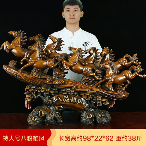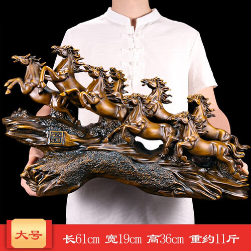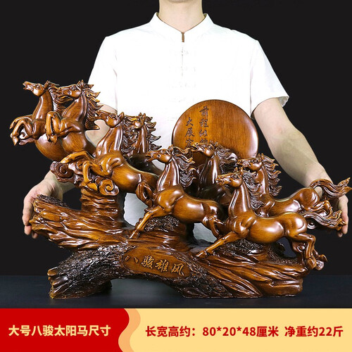 富有创意的八骏雄风造型,轮廓清晰逼真,惟妙惟肖的视觉体验十分灵动精巧。外观古朴大气,多场景摆放尽显中式风。