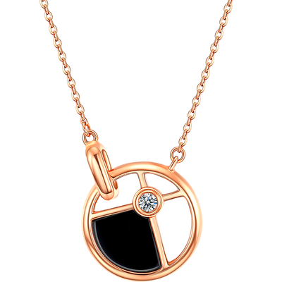 嵌入无添加的高品质黑玛瑙,色泽黑亮、光洁度好,让人过目不忘。不规则划分的四格镂空设计,与钻石互相衬托,精致美观。