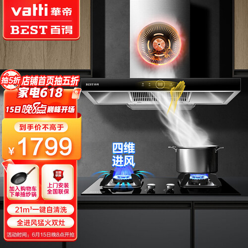 百得一键热炫自动洗烟灶套装