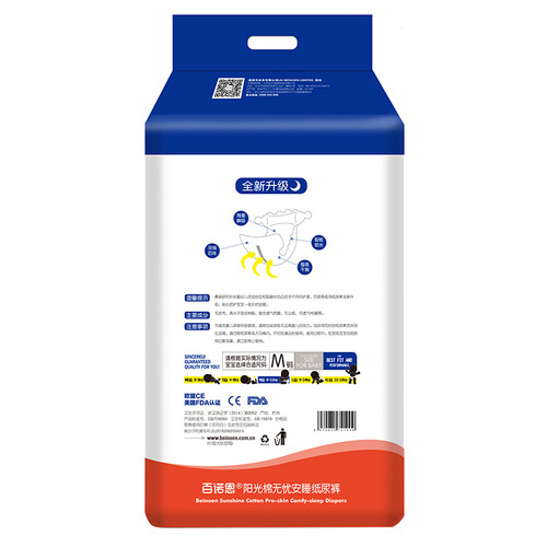 采用复合芯体技术,让其吸量更加大,让宝宝睡得更加舒适;选用环腰设计,可以根据宝宝呼吸频率自由伸缩,让宝宝穿上不会紧绷。