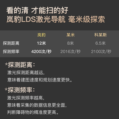 雷达扫描智能规划清扫路线,可调整路线和区域随心操控。4挡变频切换清洁模式,双边刷更好用。支持APP及语音助手指令控制。