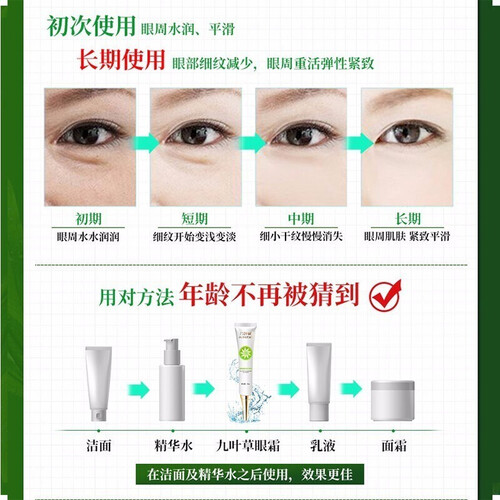质地非常细腻,很好吸收。具有很好的祛除眼袋效果,令眼周肌肤更加紧实,从而唤醒眼部肌肤的活力,赶走往日疲态。