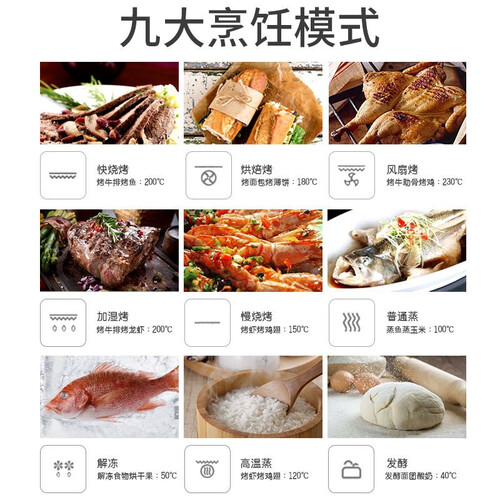 蒸汽烘烤加湿烹调,能增加烘烤时的水润度,防止出现干裂情况。中央制热系统,边角处的食物也能均匀受热,让你吃的更满足。