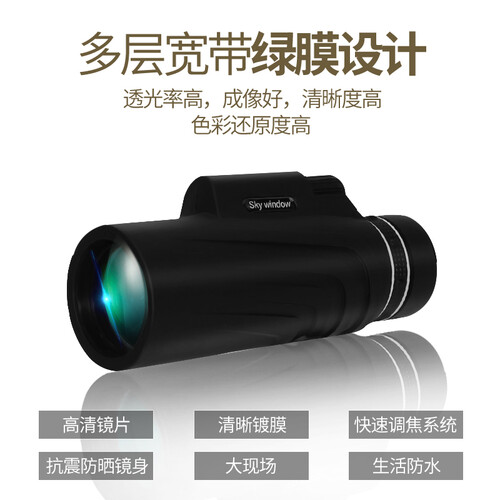 采用多层宽带绿膜设计,使望远镜的透光率更好,色彩更自然。单筒的造型,体积更为小巧,携带轻松不沉重。