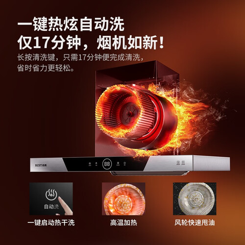 烟灶联动设计,灶具点火时油烟机自动开启排烟,并且风力随火力变化。采用立体环吸技术,避免油烟四处外散。