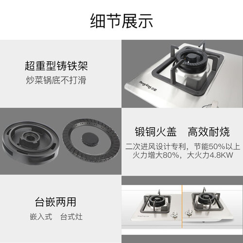 双线圈脉冲点火,无需多次操作,避免影响烹饪好心情。隔热挡火板,呵护内部精密小零件,避免影响燃耗品质。