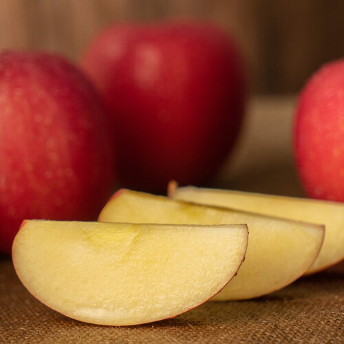 每颗苹果均达到12比1的糖酸比,香甜味道给味蕾宠溺。红润苹果皮薄果肉多汁,感受汁水溅满口腔带来的香甜味道。
