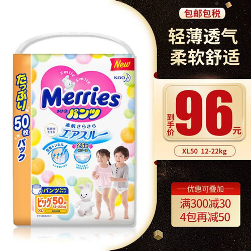 内含千倍的吸水因子,能够迅速吸收满满的尿液,保持肌肤时刻干爽洁净。棉柔的弹性环抱腰围,松紧合身不勒肚,周全守护宝宝。