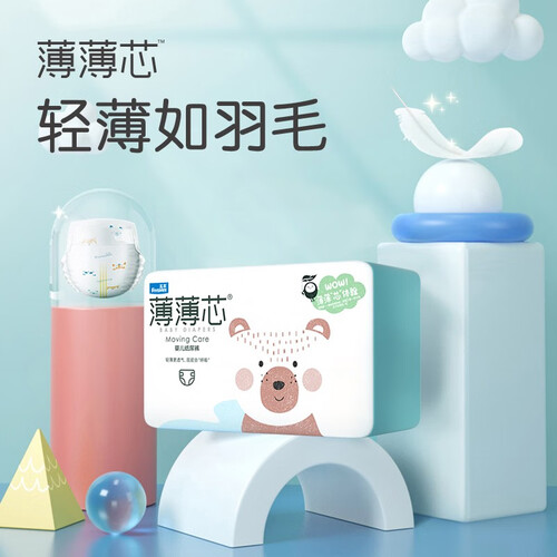 0.2厘米轻薄芯,透气不透水,让小屁屁不闷湿,宝宝更开心。高分子吸水珠,经多重加压工艺,牢牢锁住尿液。