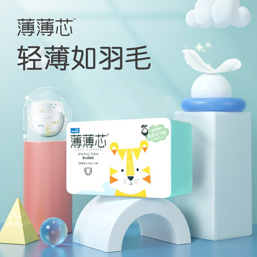 采用拉拉裤的设计,能够全面包裹增加受力面积,不易产生紧勒不适感。纤薄的芯体却有着较大的吸水量,好处多多。