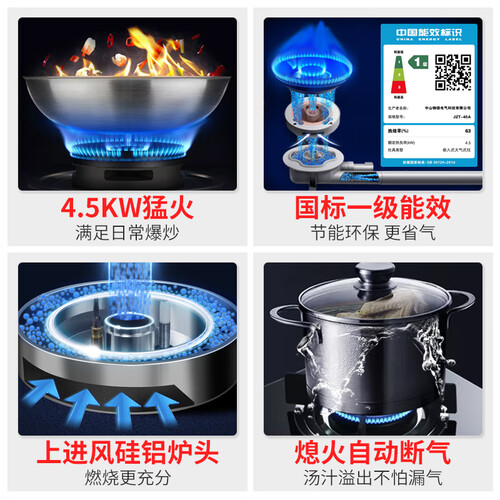 拥有出色的能效认证,节能省气,满足家用需求。一体纯钢面板设计,触摸不易留指纹。人性化的熄火保护设计,使用更加安全。
