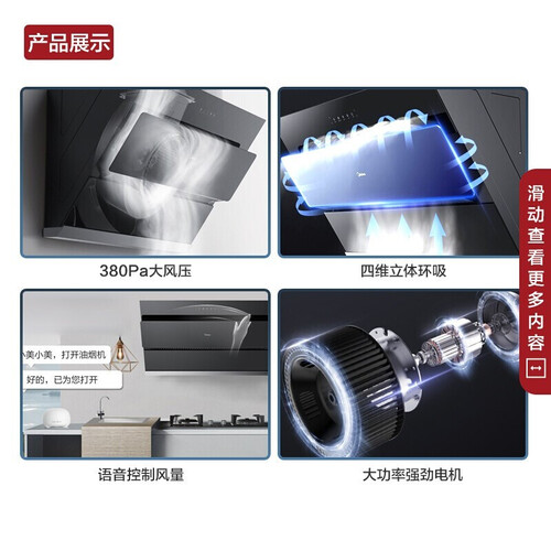 具有强劲大吸力,轻松赶走不利于健康的油烟,不残留。支持语音控制功能,能开口就不动手,让你轻松的做菜肴。