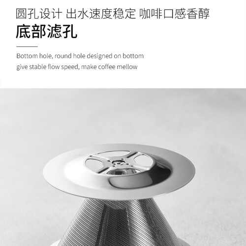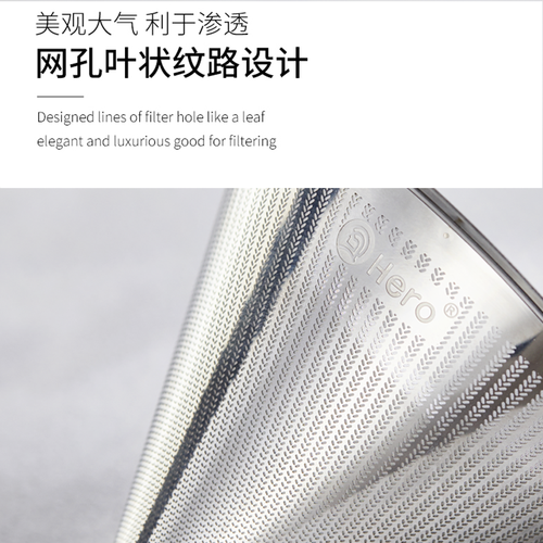 小滤网,大功能,采用双层加密过滤,可过滤咖啡和茶叶等,无需滤纸,环保卫生,而且可循环使用,采用不锈钢材质,健康安全。