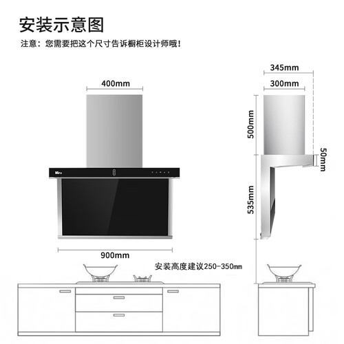采用顶侧两吸的排烟方式,油烟不易扑脸,能够呵护肌肤。拥有900mm的大尺寸设计,可以罩住灶台,不易跑烟。