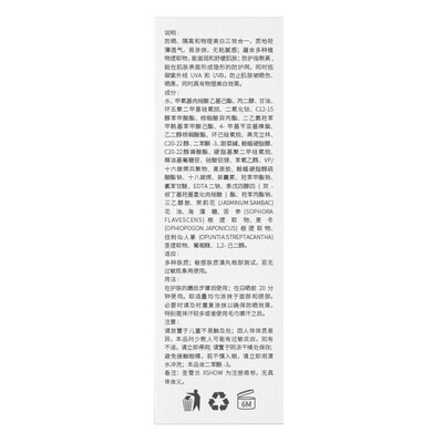 含有无油配方,一抹即可化水,易于肌肤吸收,给予肌肤水润呵护。特别添加防晒成分,抵御紫外线长达7.5小时。