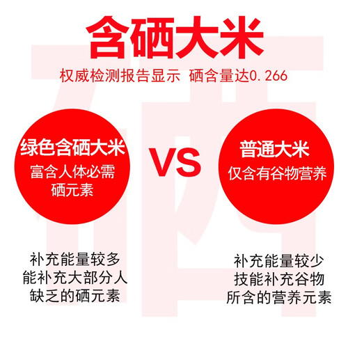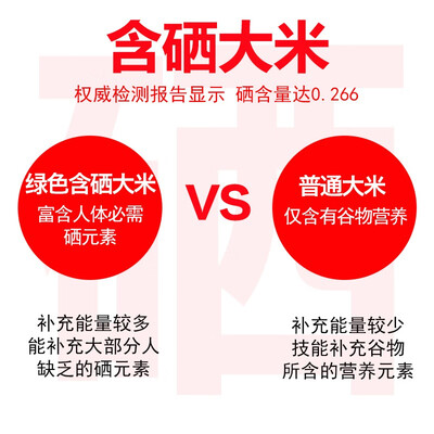 经过农业科学部门的检测,大米富含丰富的硒元素,在食用时不仅可补充普通大米所含营养,也可补充大部分人所缺的硒元素。