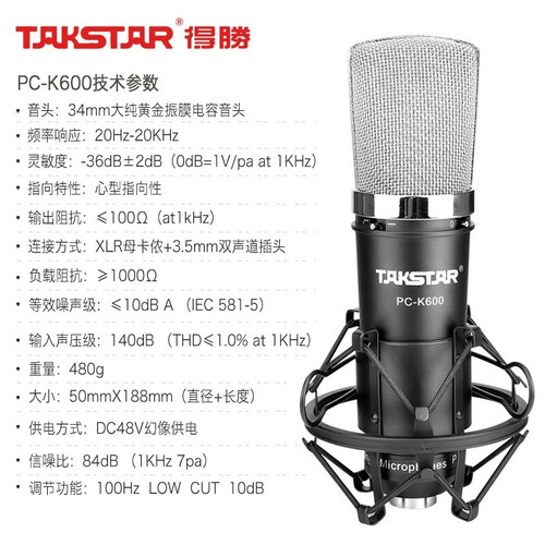 采用镀金大振膜音头,音质细腻,拾音更清晰。搭配稳固防震架,坚固耐用,让您放心入手。