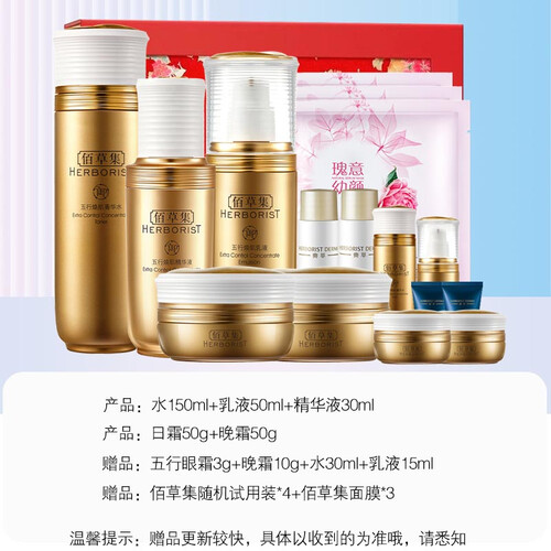 内含水、乳、精华液、日霜和清润晚霜,一套满足日常护肤需求,让肌肤时刻保持水嫩。添加珍珠成分,能提亮肤色,减少发黄烦恼。