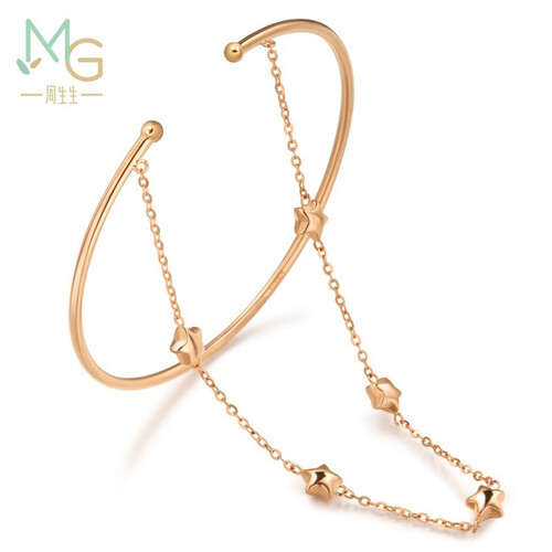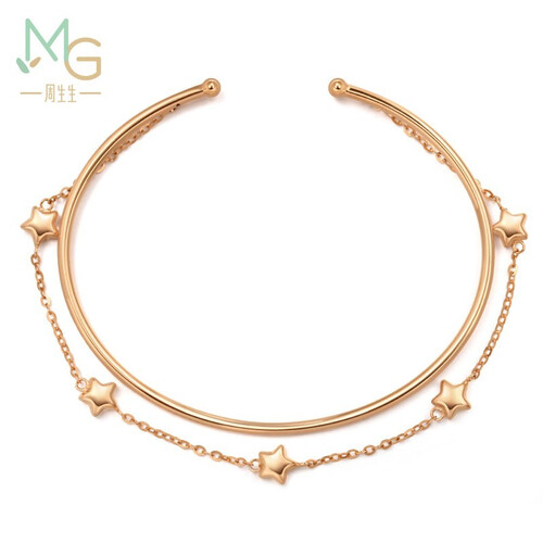 将圆润镯身与细链叠搭,提升款式时尚感,并衬托纤细手腕线条。加入星星饰物装点,精巧惹眼,增添梦幻浪漫气息。