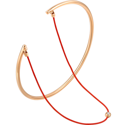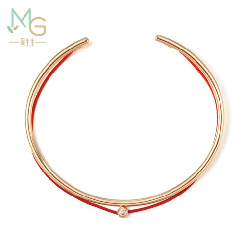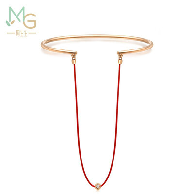 玫瑰金的手链搭配鲜艳的红绳,复古时尚,灵动大方。链身中部镶嵌优质钻石,华美典雅,为整体增加了奢华气质。